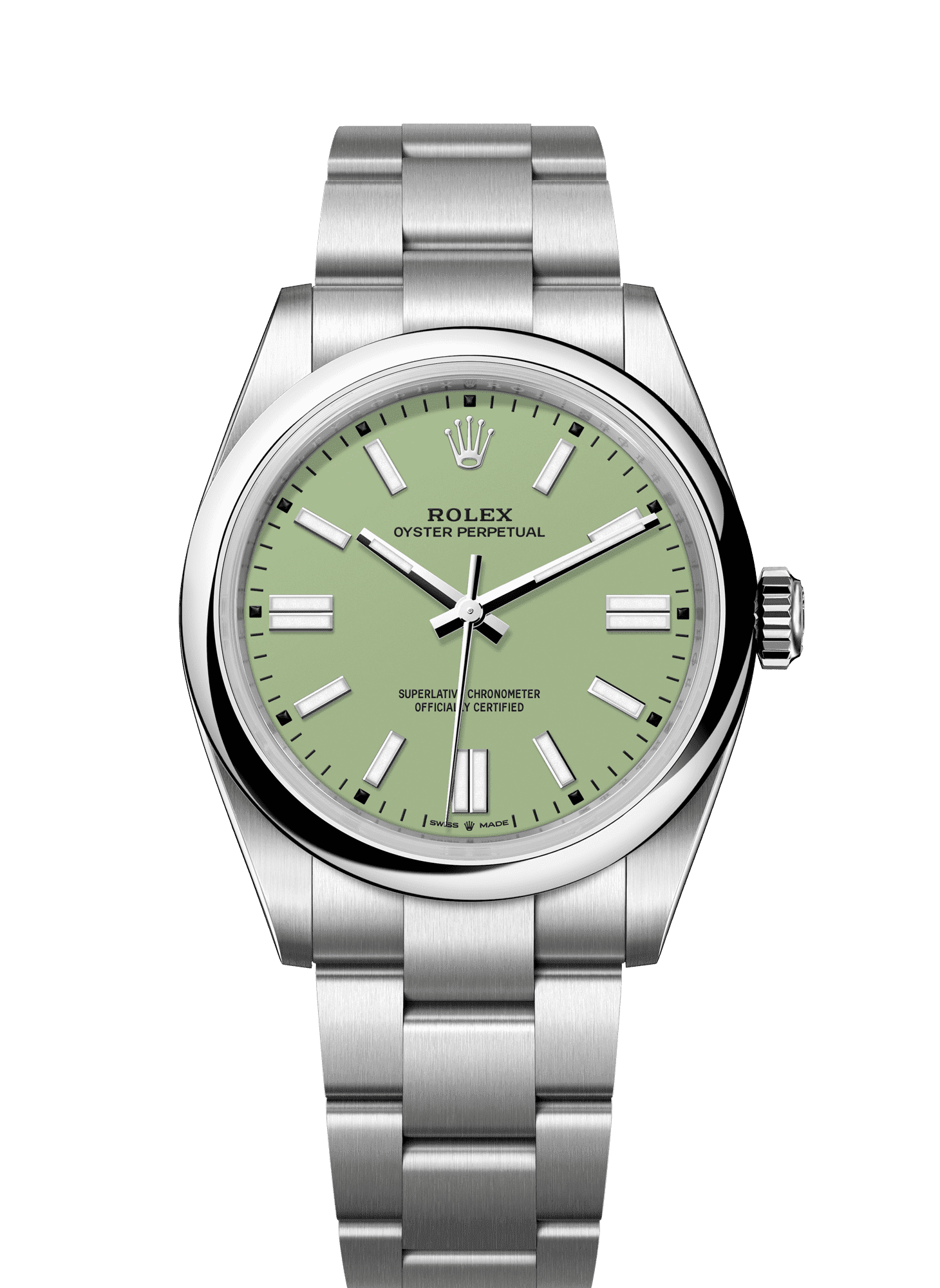 Sintetiza os dois pilares técnicos da marca, caixa Oyster e movimento Perpetual. Design limpo, essencial. Frequentemente apontado como porta de entrada para o universo Rolex. Mas não se engane: continua sendo uma peça de alto padrão.